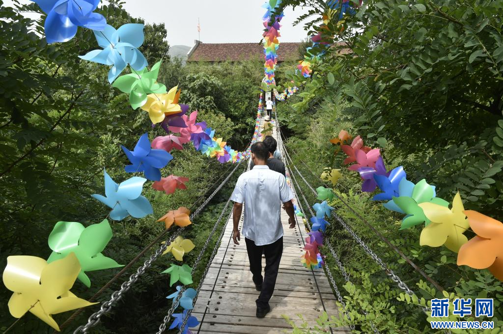 8月18日,游人在汝州市陵头镇王湾民俗村游览。