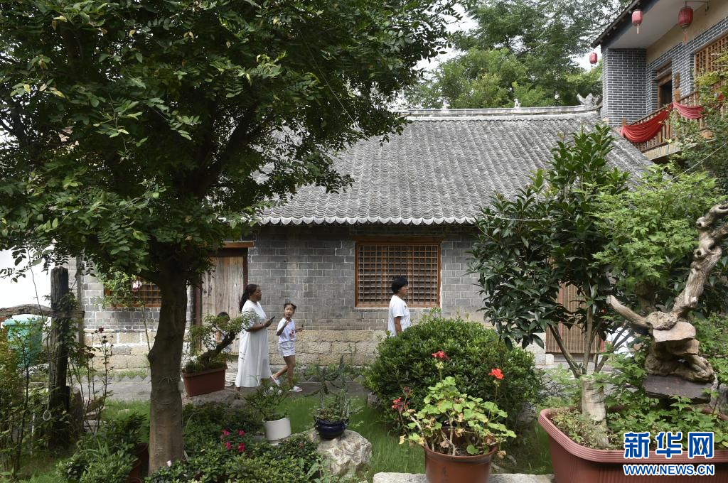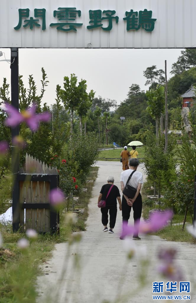 8月17日,在汝州市大峪镇袁窑村,入住客人在云堡妙境民宿区内游览。