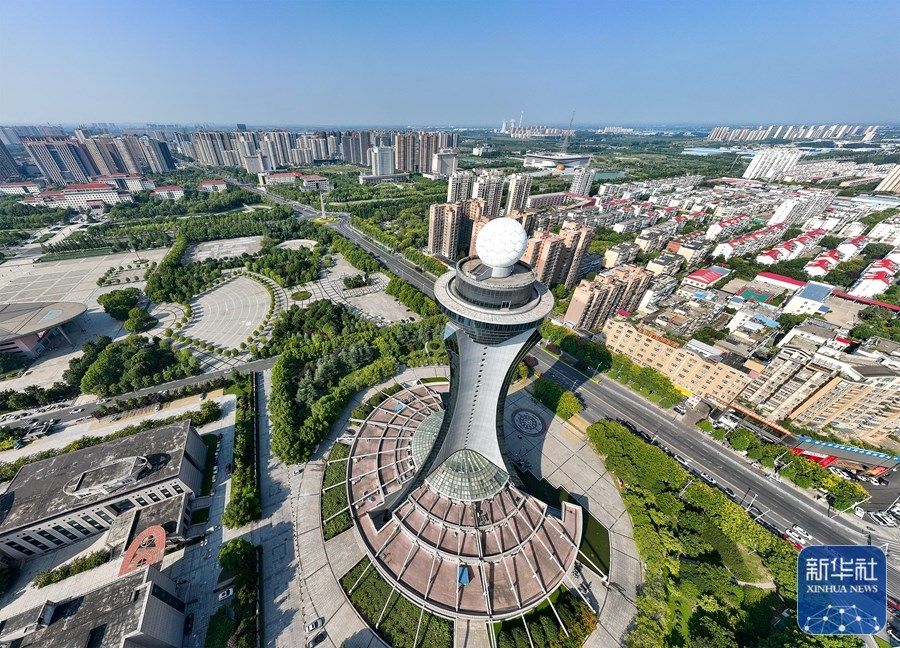 9月4日拍摄的驻马店市气象塔(无人机照片)。麻翛然 摄
