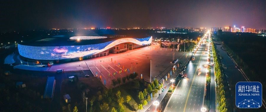 9月4日拍摄的驻马店国际会展中心夜景(无人机照片)。谷雨 摄