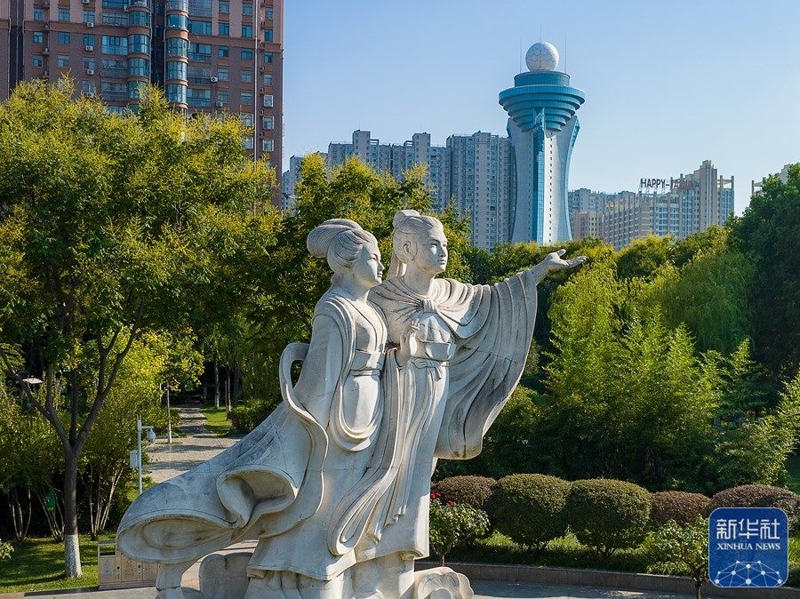 9月4日拍摄的梁祝游园(无人机照片)。麻翛然 摄