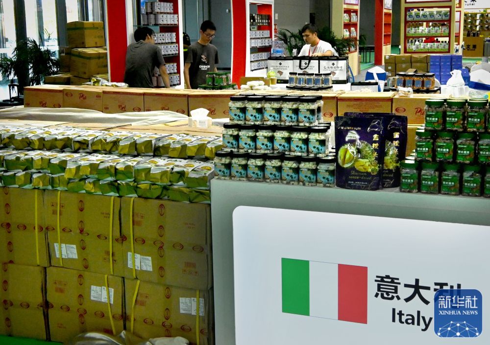 9月5日,工作人员在国际农产品加工产品展厅的意大利展区布展。王颂 摄
