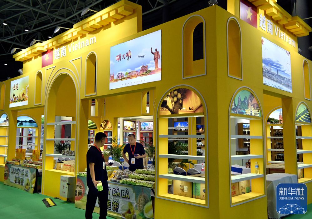 9月5日,工作人员在国际农产品加工产品展厅的越南展区布展。王颂 摄