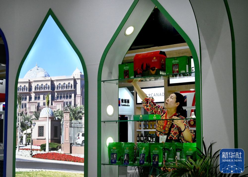 9月5日,工作人员在国际农产品加工产品展厅的阿联酋展区布展。王颂 摄