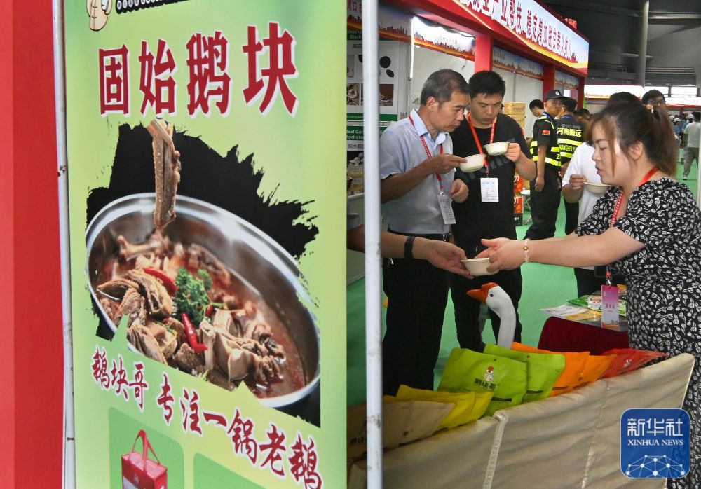 9月6日,在中国农加会脱贫地区和革命老区特色农产品展厅,河南省固始县展区的工作人员请参展商品尝预制菜品。