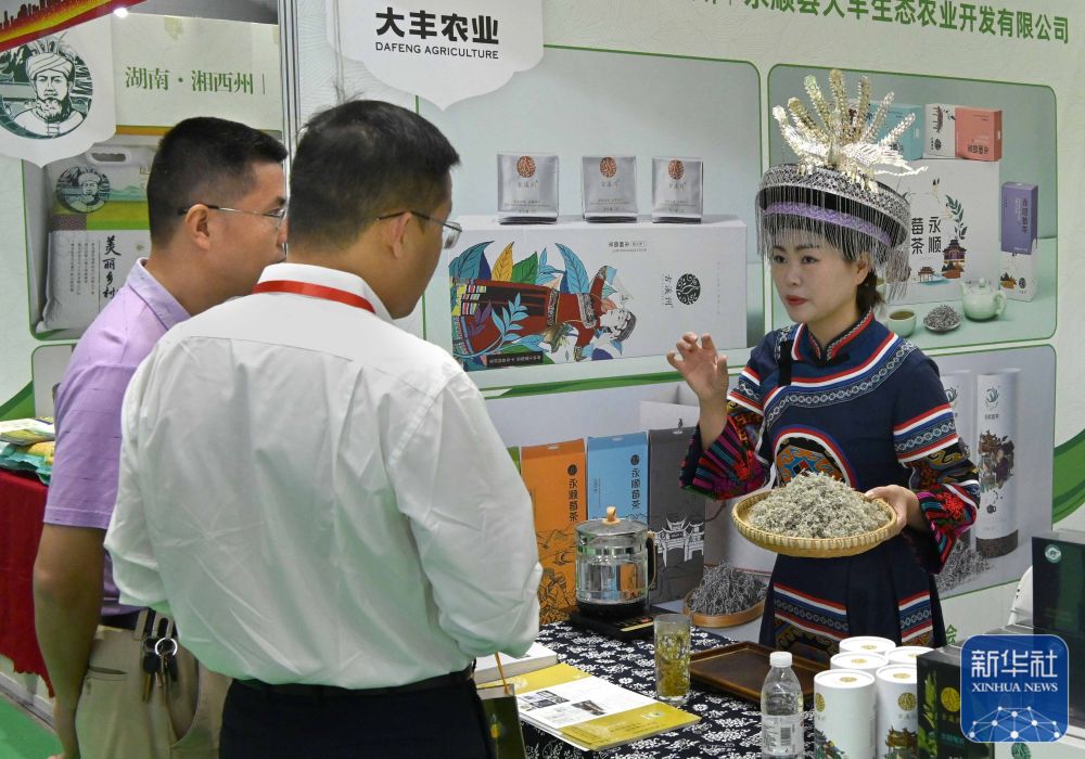 9月6日,在中国农加会脱贫地区和革命老区特色农产品展厅,湖南省永顺县的工作人员在推介农产品。