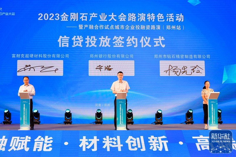 新华社客户端郑州9月19日电 9月18日,2023金刚石产业大会特色路演——产融合作试点城市企业投融资路演(郑州站)在郑州高新区举行,正式拉开第六届磨料磨具磨削展览会暨2023金刚石产业大会的帷幕。此次活动旨在通过经验分享、产融签约、基金推介、企业路演等形式,拓宽产业融资渠道,推动金刚石等超硬材料产业链供应链打通堵点卡点,助力形成“科技—产业—金融”良性循环。