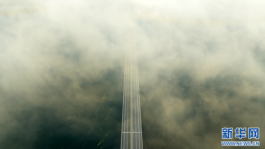 图为云雾笼罩下的渑淅高速淅川张湾特大桥。