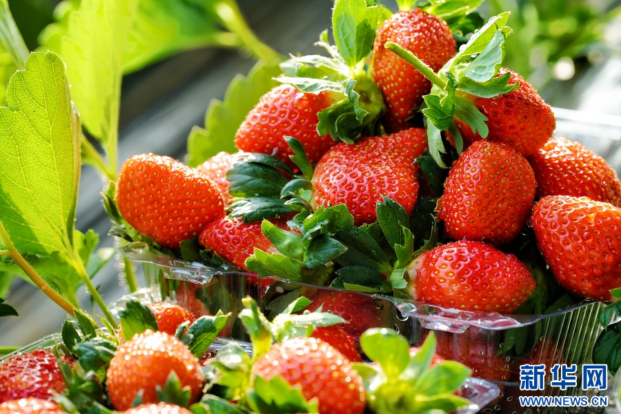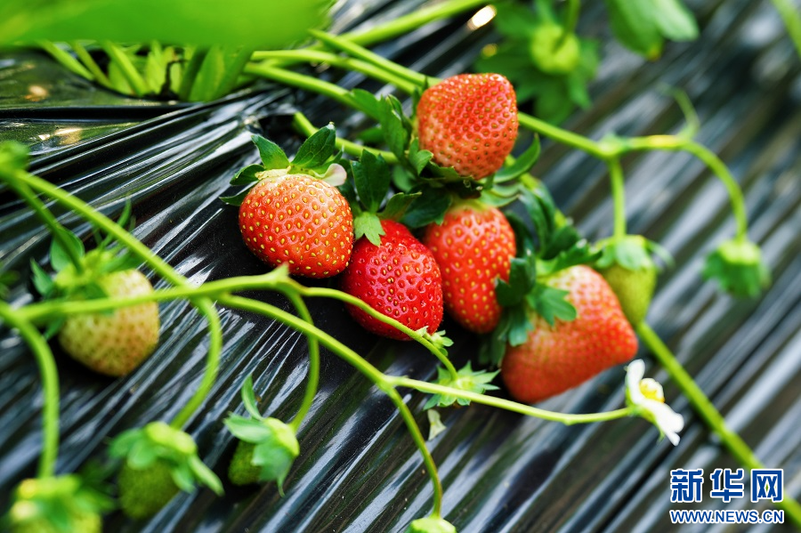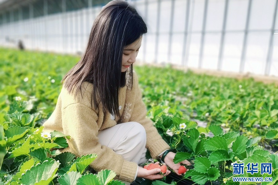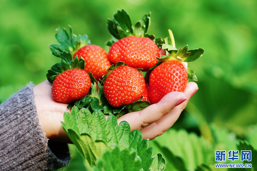 11月21日,走进河南省南阳市镇平县老庄镇小西岗村百果园,一颗颗草莓鲜红饱满,长势喜人,吸引附近游客前来采摘体验,尝一口软甜多汁的果肉,让人感受到甜蜜与美好。(黄磊磊/文 时君洋/图)