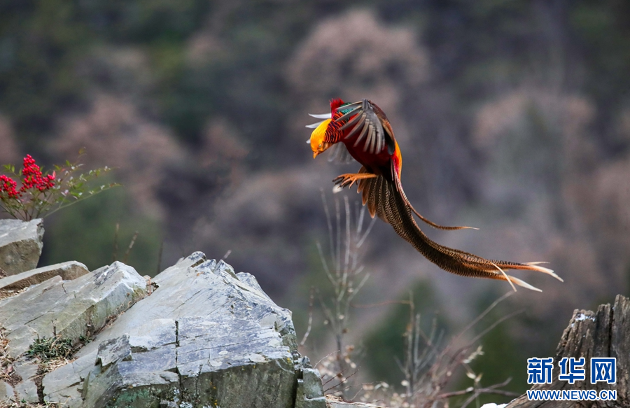 12月23日,在河南省三门峡市卢氏县文峪乡灰堆石村拍摄的红腹锦鸡。