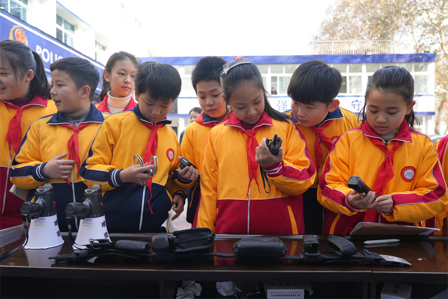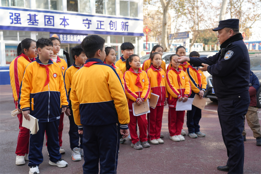 1月8日,在南阳市公安局宛城区公安分局东关派出所,孩子们正在了解民警日常工作。