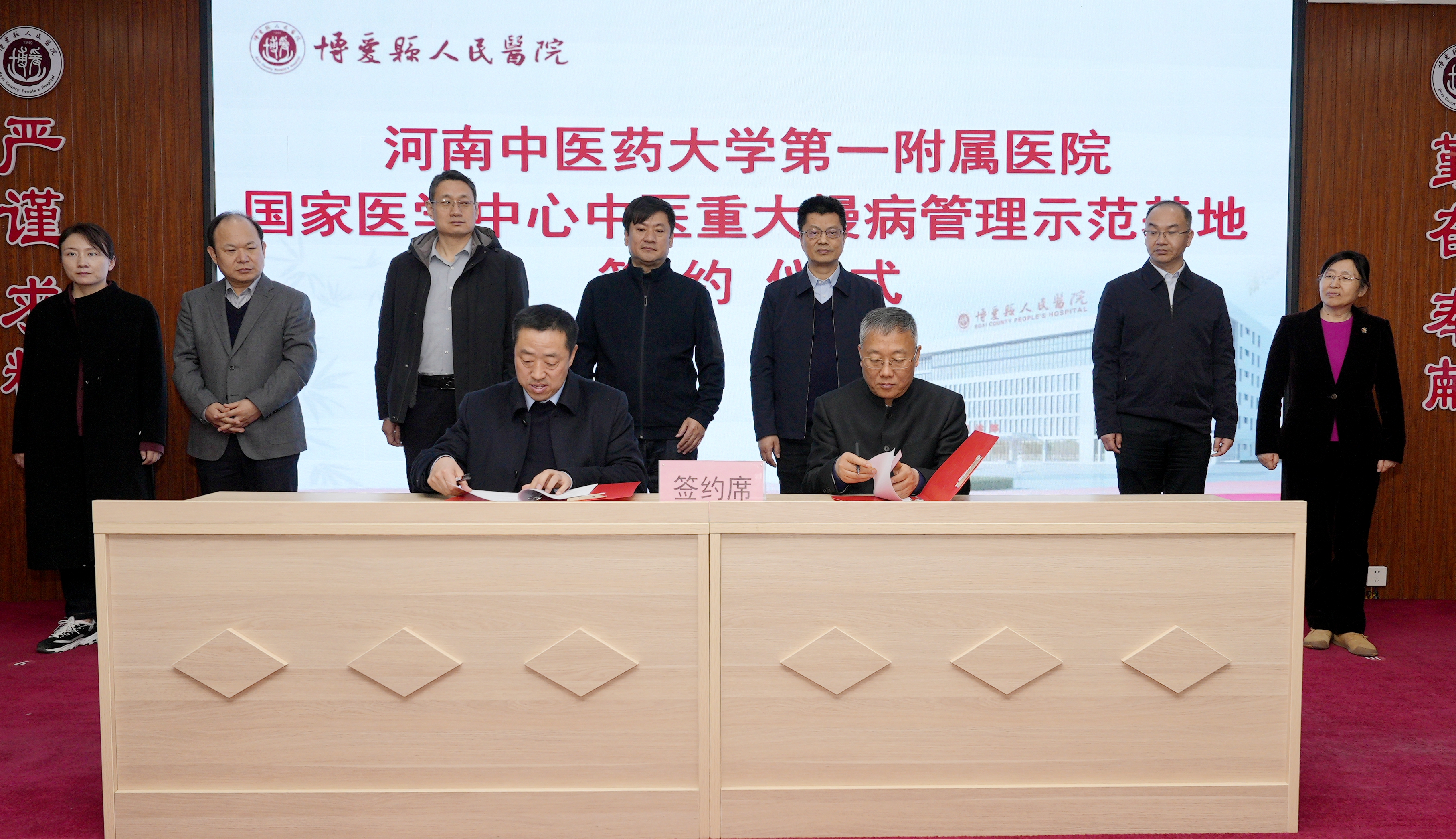 2月19日,河南中医药大学第一附属医院与博爱县人民医院签署合作协议,共同推进中医重大慢病管理示范基地建设。