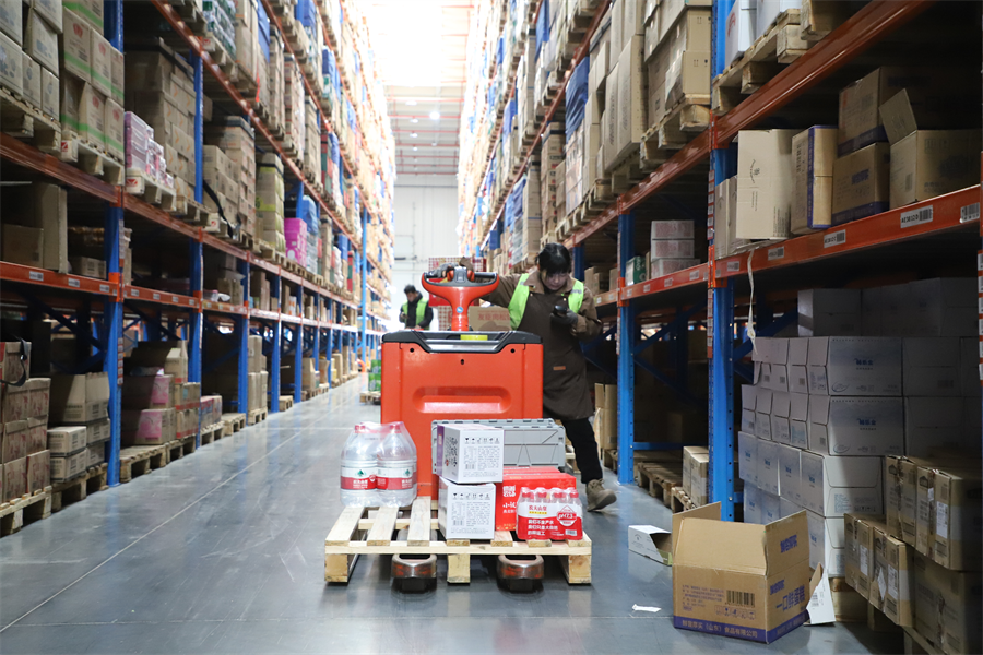 仲春时节,走进位于河南省镇平县遮山镇的万德隆产业物流园仓储中心,工人们有条不紊地穿梭在货架中分拣相应的商品,一派繁忙的景象。