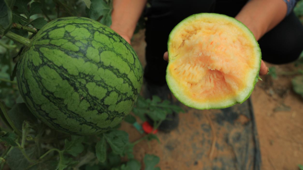 图为驿城区蚁蜂镇鲁湾村春兴种植农民专业合作社的彩虹吊瓜。