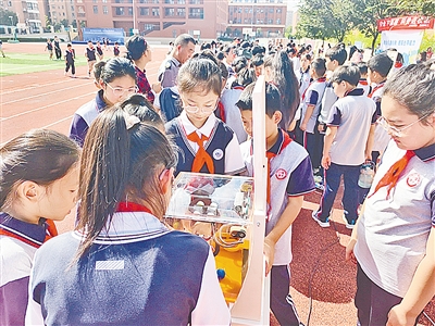 科技节上,学生们动手操作科普展品