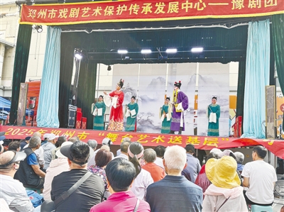 今年1月,省政府工作报告中提出,要组织“舞台艺术送基层”等文化惠民活动,推动更多优质文化资源下沉,叫响《梨园春》等知名品牌,推动豫剧振兴发展。5月7日,2025年郑州市“舞台艺术送基层”活动正式启动,数百场惠民文艺演出将戏剧舞台搬进社区、农村、学校与商圈(如图)。8月23日、24日,“见‘郑’美好·清凉消暑季”——2025郑州暑期促消费活动带着豫剧《黄河儿女》,在郑州大剧院戏曲厅精彩上演,用行动落实文化惠民的实践。