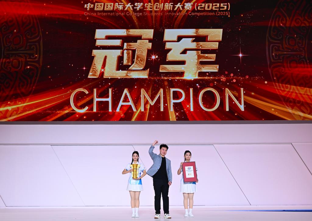10月15日,在中国国际大学生创新大赛(2025)冠军争夺赛冠军颁奖现场,清华大学的“基于类脑架构的下一代通用模型及智能体生态”项目获得冠军。