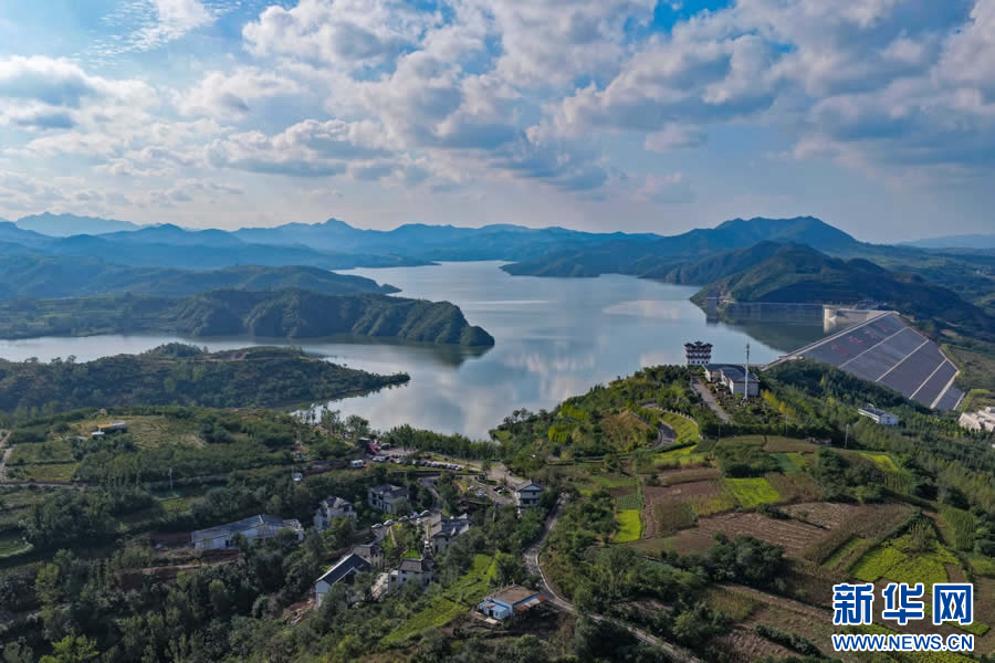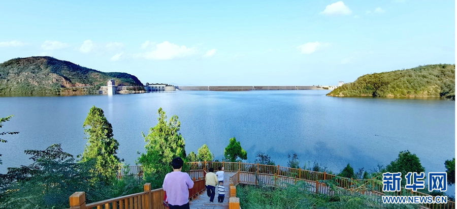 10月13日,持续的阴雨天过后,河南省汝阳县云梦湖畔的天空湛蓝迷人,湖水清澈如镜。微风拂过,波光粼粼,岸边的绿树、建筑物与远处的青山相映成趣,构成一幅清新秀美的生态画卷,吸引众多市民与游客前来赏景打卡,感受初秋的惬意与舒爽。新华网发(高山岳 李景堂 摄)