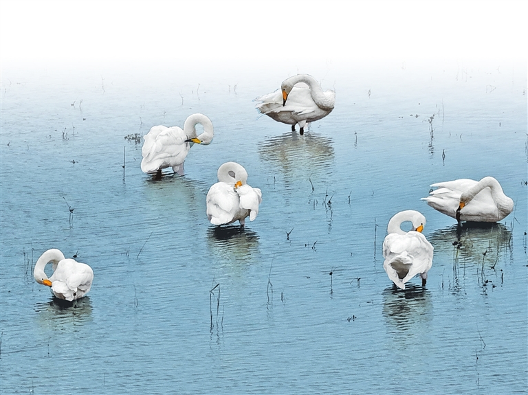 飞来三门峡越冬的白天鹅。 张明云 摄