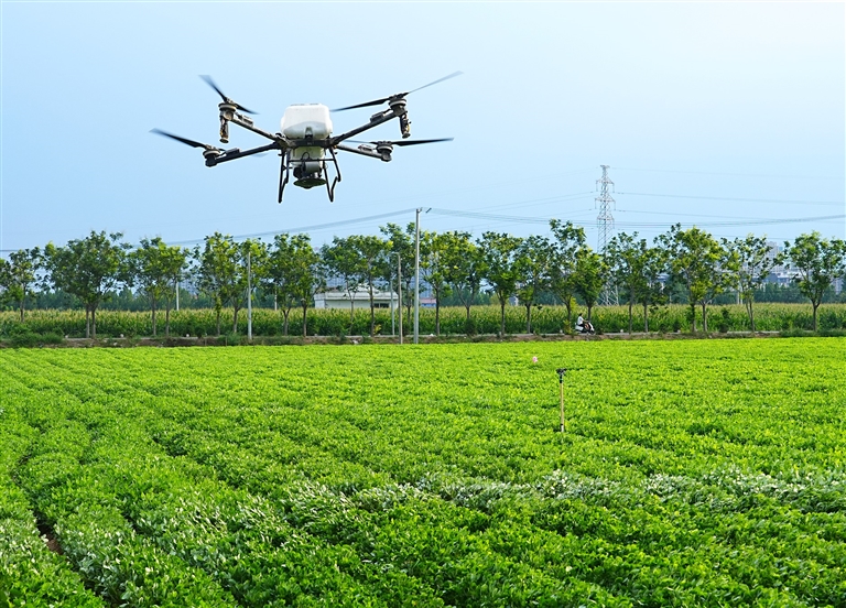 智能灌溉系统随时能调,田埂上的智能传感器更像是“千里眼”——光照度、土壤湿度等数据实时传到智慧农业调度中心,地里的智能装备让张先智无比省心,“该补水时系统提醒,该防病虫时精准施策,一点不浪费”。