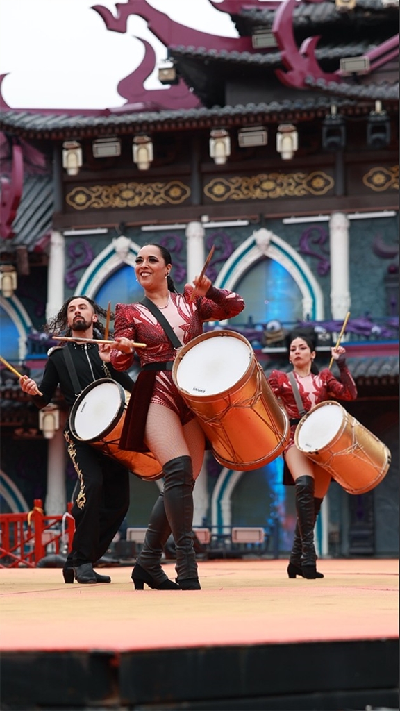 11月2日,开封万岁山武侠城,外国演艺人员在进行才艺表演。本报记者 王向前 摄