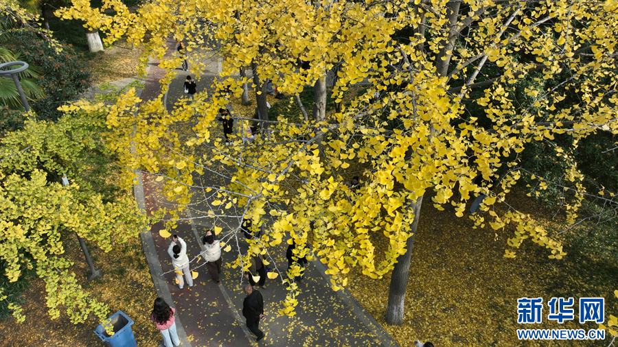 初冬时节,河南省南阳市人民公园、申伯公园内,一幅幅金黄色的画卷悄然铺展,吸引市民驻足银杏树下,欣赏美景,记录美好瞬间。(吴双 王浩)