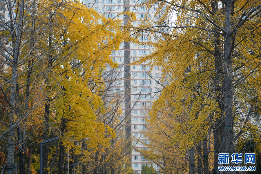 11月11日在南阳人民公园拍摄的银杏枝叶。