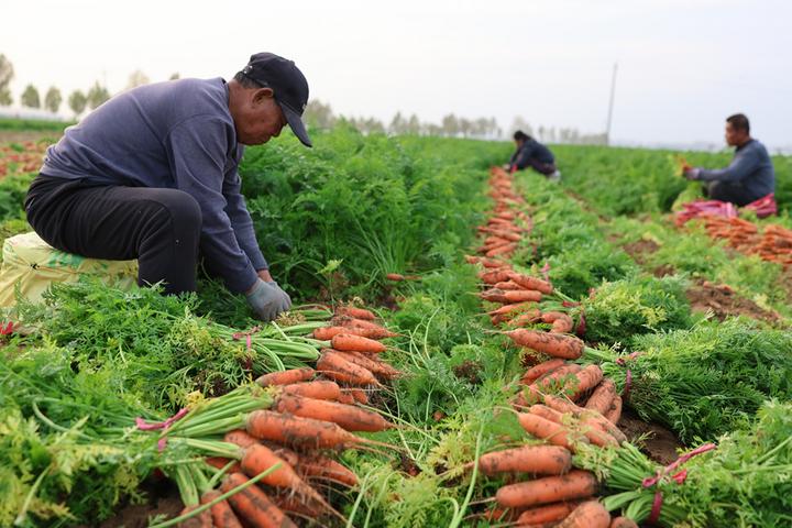 11月12日,在河南省安阳市内黄县马上乡小黄滩村,种植户正忙着采收胡萝卜。