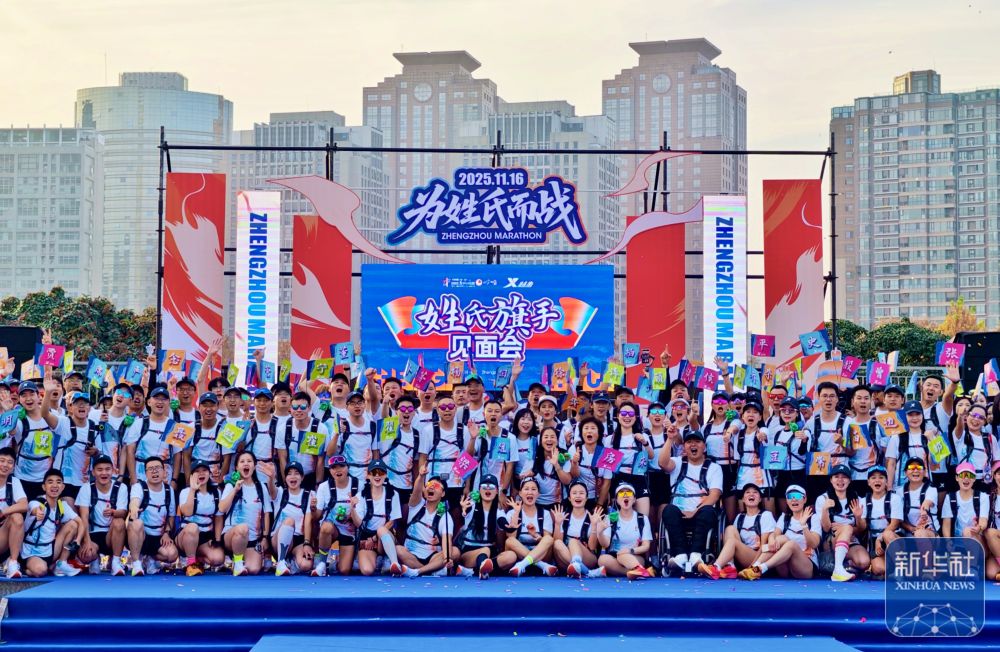 11月15日,2025郑州马拉松“姓氏旗手”见面会在郑东新区如意湖文化广场举行,来自全国各地的200名“姓氏旗手”身着定制“战袍”集体亮相。他们表示,将在2025郑州马拉松赛道上展现跑者风采,传递体育精神。