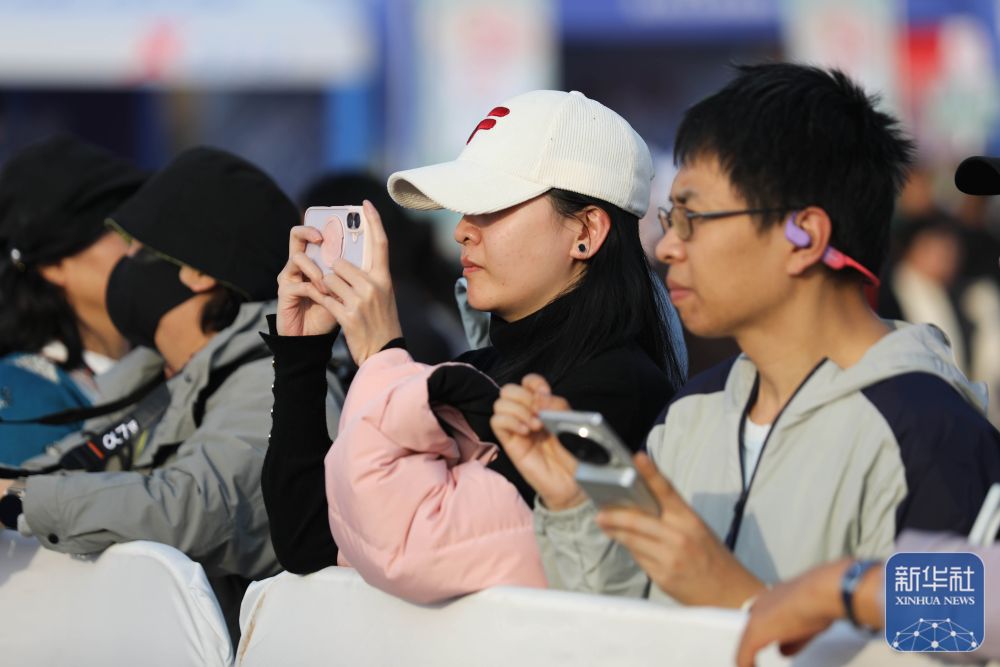 11月15日,市民在2025郑州马拉松“姓氏旗手”见面会现场用手机记录精彩瞬间。何五昌 摄