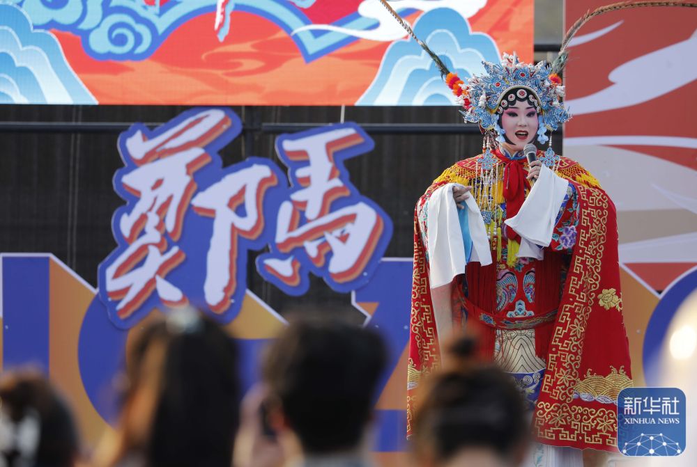 11月15日,2025郑州马拉松“姓氏旗手”见面会上,豫剧演员在现场表演。冯小敏 摄