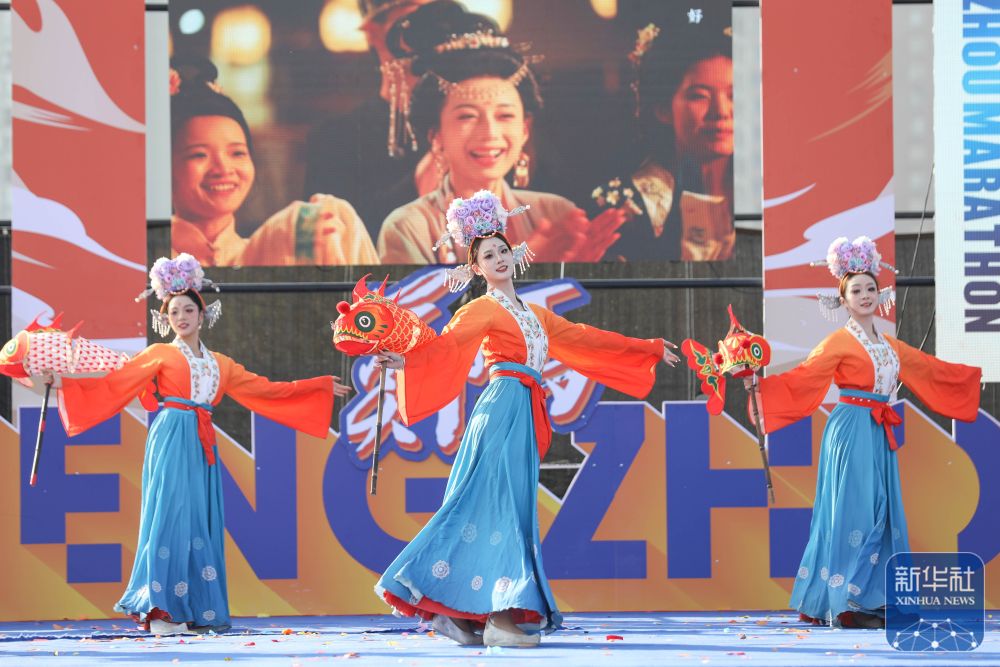 11月15日,演员在2025郑州马拉松“姓氏旗手”见面会上进行文艺表演。何五昌 摄