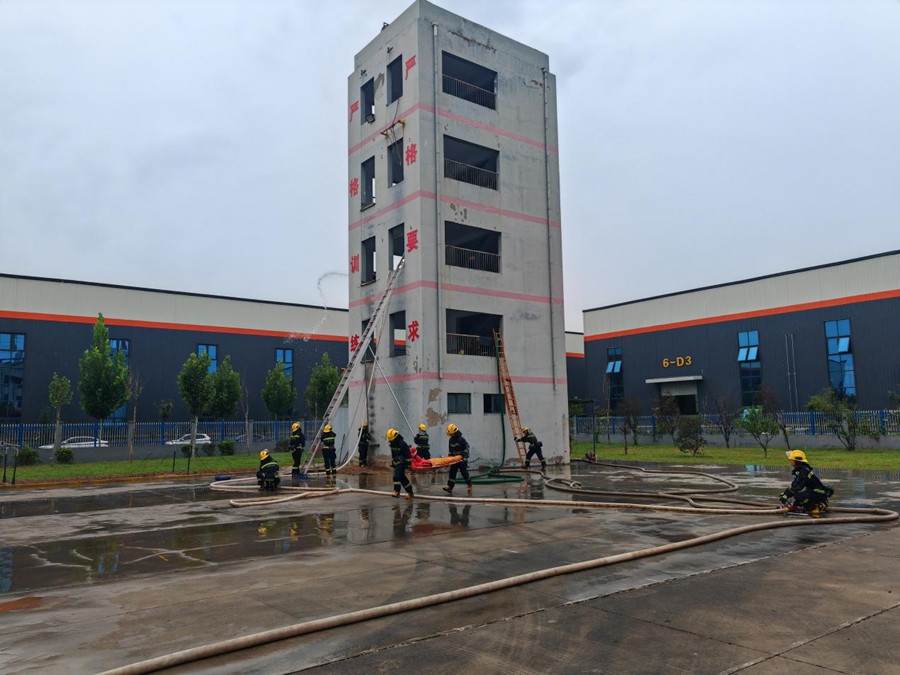 11月15日,在安阳市滑县,消防救援站开展模拟建筑火灾实战训练。(任嘉伟 摄)