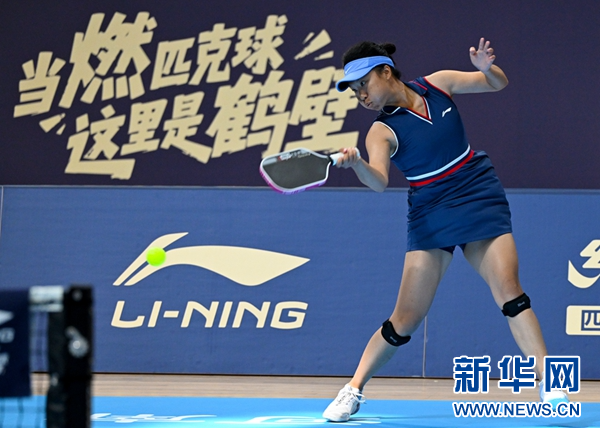 9月25日,2025全国匹克球锦标赛在河南省鹤壁市开赛。图为天津李宁代表队球员曾辰在男女融单比赛中。新华社记者 郝源 摄