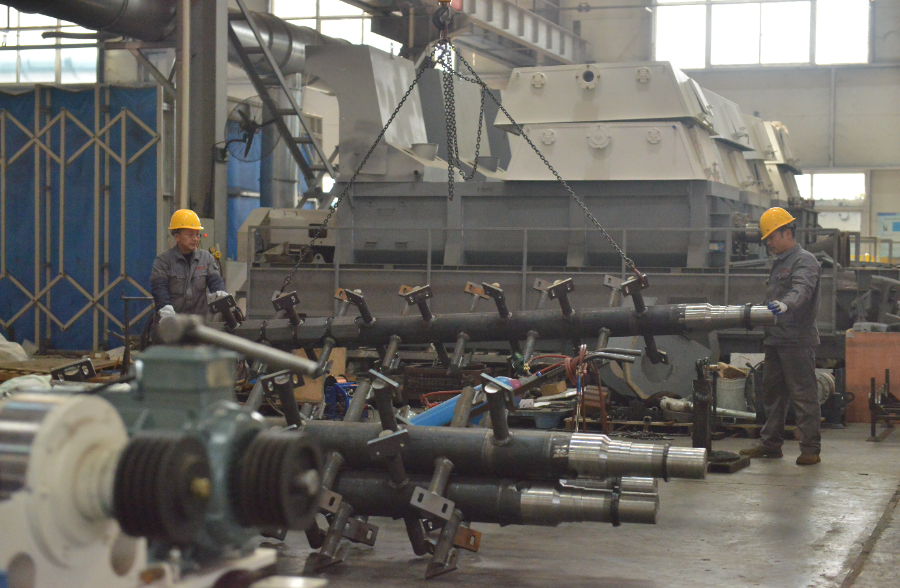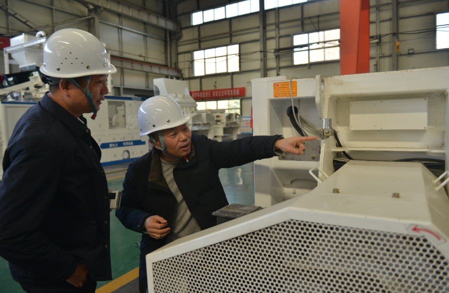 图为德通智能科技股份有限公司技术总监李冠峰在车间介绍设备性能。