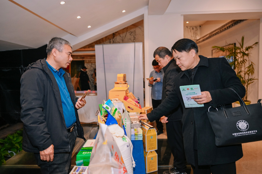 图为与会嘉宾在咨询特色农产品。