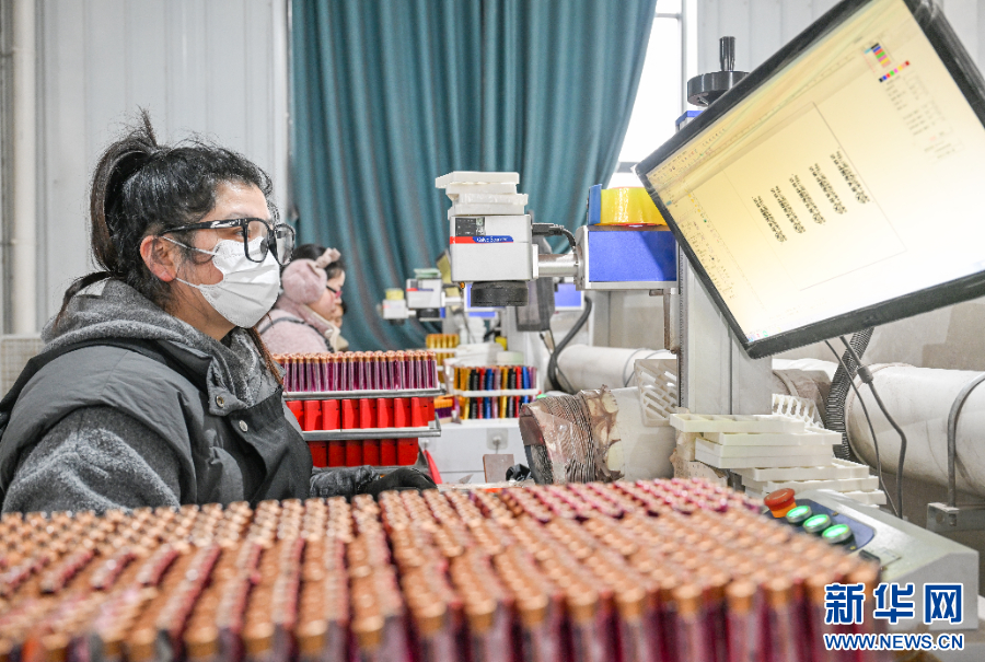 夏邑县会亭镇一家打火机企业的工作人员在车间内操作激光刻字设备。