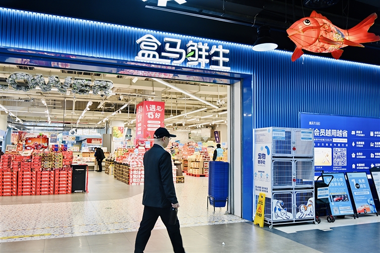 图② 盒马鲜生郑州锦艺城王府井店。河南日报财经全媒体中心记者 李博 摄