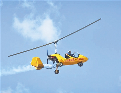 河南三和航空工业有限公司自主研发的自转旋翼机进行空中表演 郑州通航试验区管委会供图