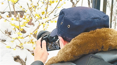 广场内蜡梅凌寒绽放,枝头被积雪压得微微低垂,不少市民专程前来踏雪寻梅,或在梅林间驻足拍照,或轻触落雪寒梅细细端详,沉醉在冬日独有的雅致意境里;摄影师们则架起三脚架,凝神捕捉雪映寒梅的静谧画面,将这一动一静的美好定格。