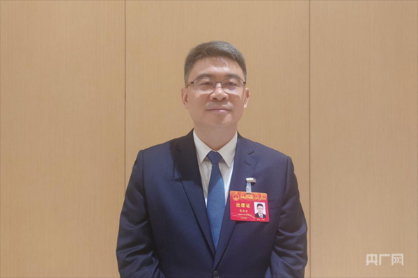 河南省人大代表憨振强讲述了他们把“小粉条”做成强县富民“大产业”的故事。(央广网记者 夏莎 摄)