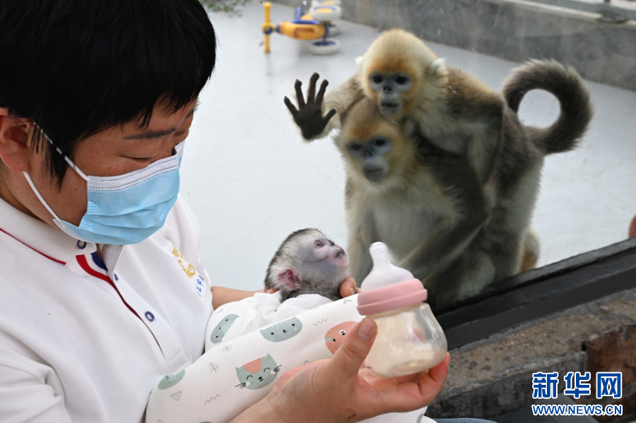 2025年4月8日,工作人员在河南省商丘动物园给川金丝猴幼崽喂奶(获评2025年新华社年度照片)。新华社发(李恒 摄)
