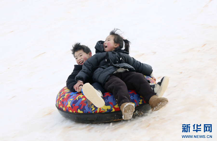 2025年1月29日,游客在河南省洛阳市汝阳县柏树镇窑沟村滑雪。春节假期,各地群众欢欢喜喜过大年。新华社发(康红军 摄)