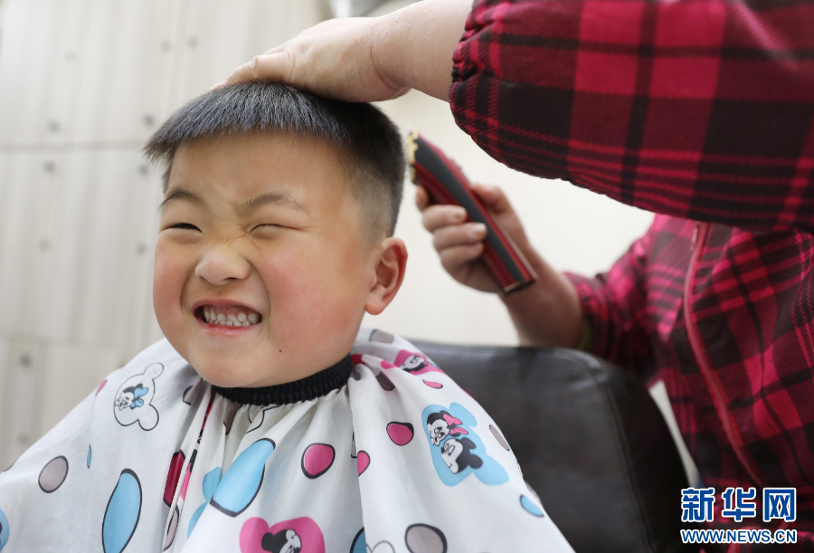 2025年3月1日,一名小朋友在河南省焦作市温县一家理发店理发。当日是农历二月初二,我国民间有“剃龙头”的习俗,不少人们来到理发店理发,为新的一年讨个好彩头。新华社发(徐宏星 摄)