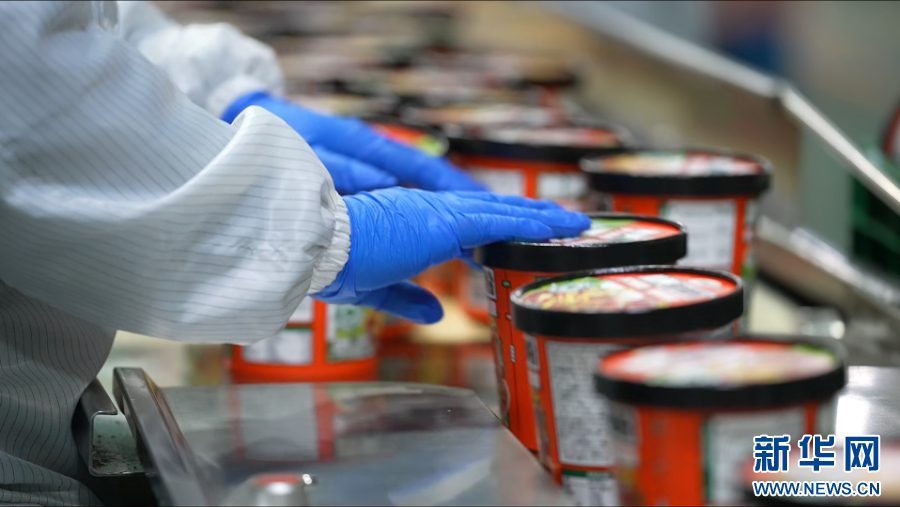图为即将完成包装下线的酸辣粉产品。新华网王晓飞 摄