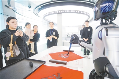 穿过“机器人发展简史”走廊,记者来到了一个特殊的展厅。在这里,一个外形仿生的“机器人讲解员”正用流畅的中文向参观者讲述着从1920年捷克剧作家恰佩克首次提出“机器人”概念,到如今通用人工智能(AGI)与具身智能深度融合的百年历程。当冰冷的机械外壳被赋予了“讲述者”的身份,这段历史显得格外生动。