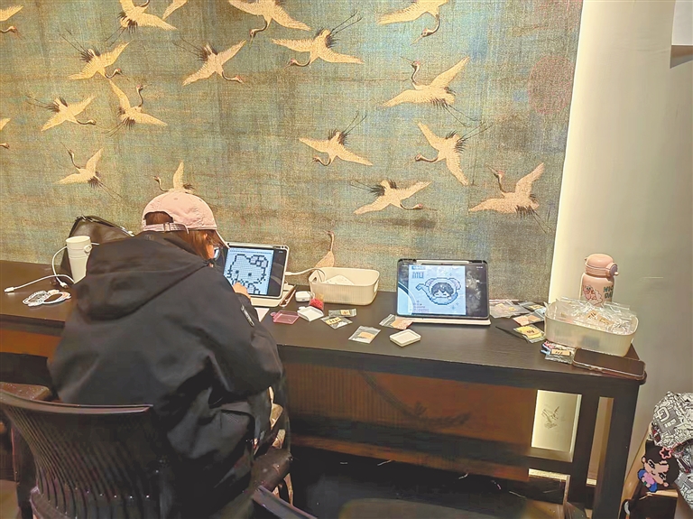 拼豆DIY手作店内,玩家正在玩拼豆。 本报全媒体记者 魏蔚 摄