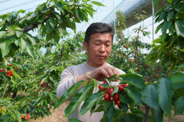 依托当地土壤肥沃、光照充足的自然优势,打渔陈镇通过“合作社+农户”模式,统一进行品种引进、技术服务与市场对接。目前樱桃种植已经从田庄村发展到接泊浪、周庄等周边10多个村庄,形成了约3000亩樱桃种植规模。