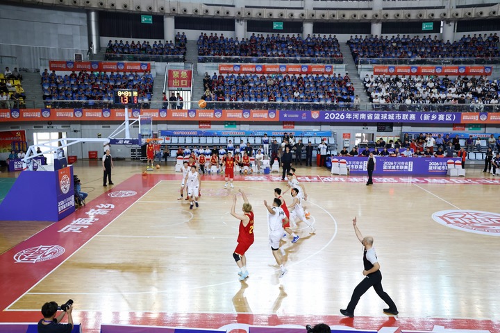 4月26日,2026年河南省篮球城市联赛展开了第一阶段第三轮的较量。新乡队在长垣市体育馆主场迎战安阳队,最终以75:57的比分取得本场比赛的胜利。(朱新国 刘伟)