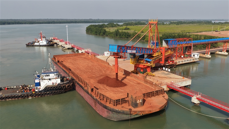 几内亚博凯地区,内河港口汽笛长鸣,满载铝土矿的万吨货轮缓缓离岸,驶向万里之外的中国。